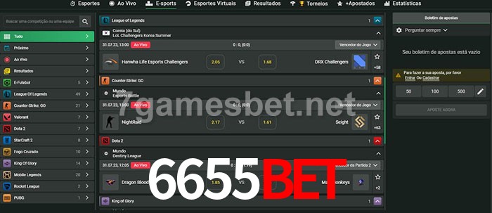 O 6655Bet oferece uma grande seleção de opções de apostas em e-sports com probabilidades competitivas